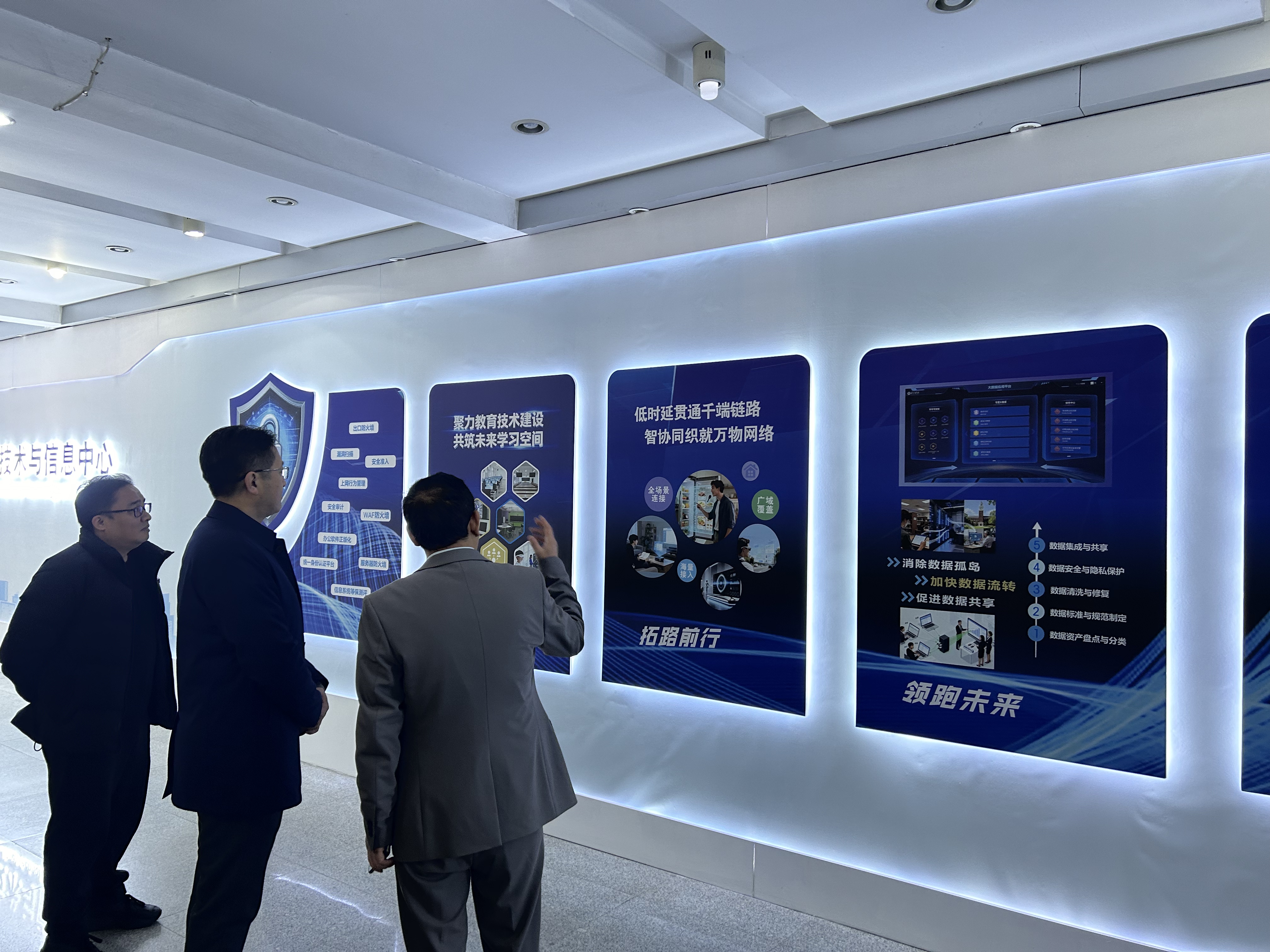 活动伊始,我校陪同唐建伟总经理一行先后参观了现代教育技术与信息中心文化走廊、智慧运营中心及算力中心,直观展现了中心数字化建设成果与服务理念。随后,宾主双方在中心会议室举行深度交流。中心主任周明元代表中心对唐建伟总经理一行的到访表示热烈欢迎,强调此次来访是学校“十五五开局之年开局之时的关键活动”,意义非凡。他指出,中国联通作为“数字信息基础设施运营服务国家队、网络强国数字中国智慧社会建设主力军、数字技术融合创新排头兵”,其行业担当与技术实力让双方深化合作的信心愈发坚定。