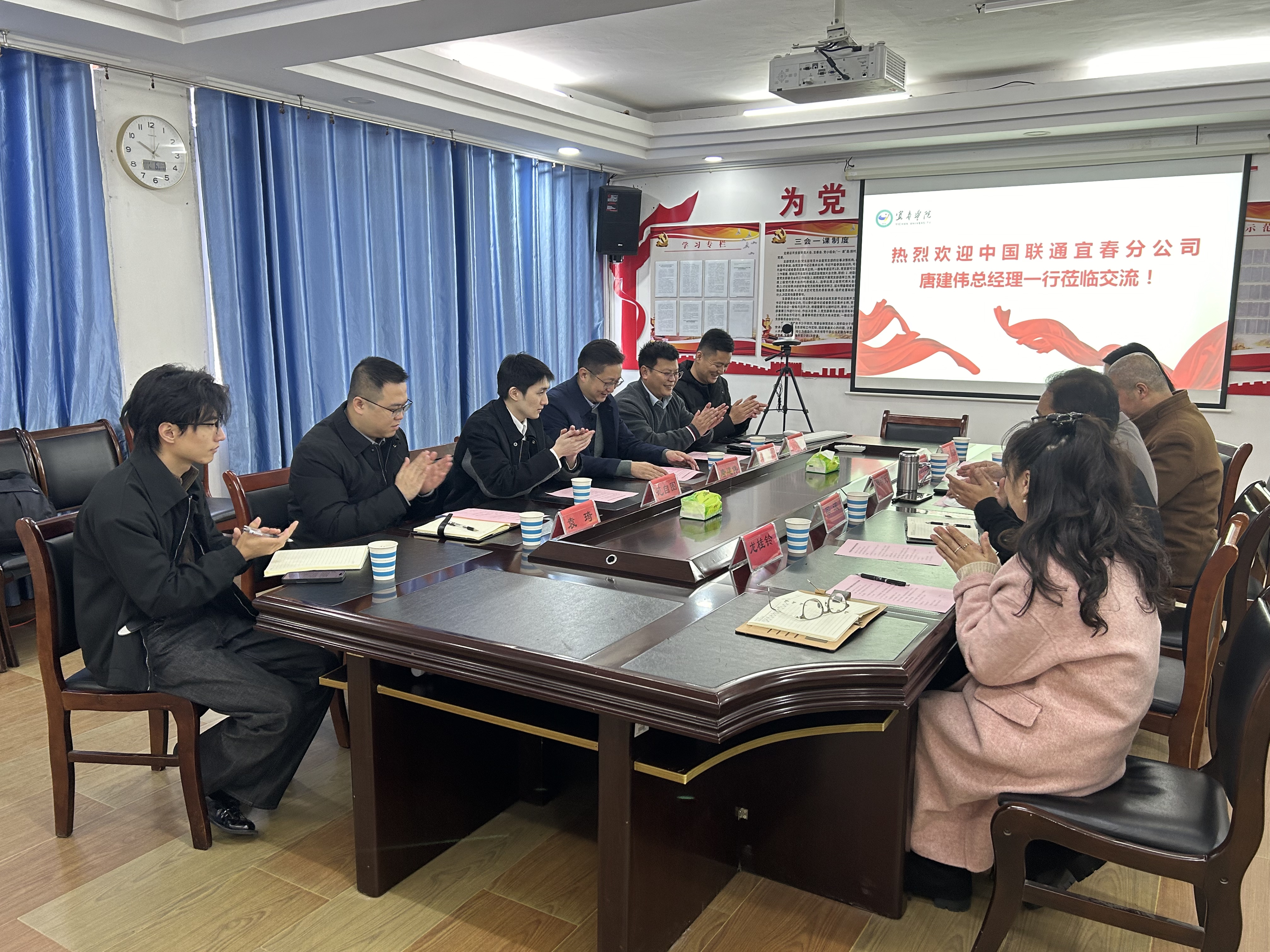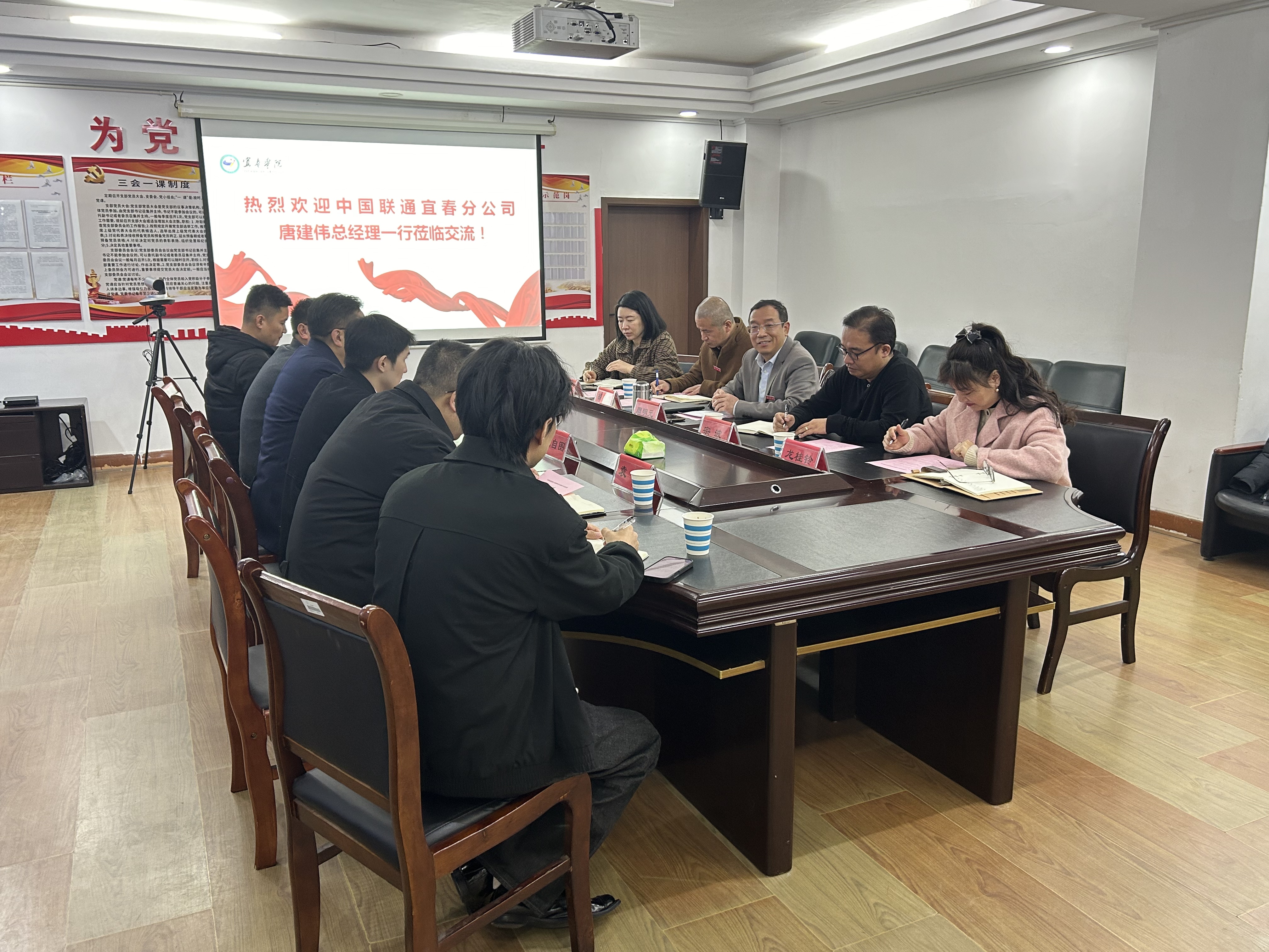 1月6日,中国联通宜春分公司总经理唐建伟一行到访我校,开展校企合作专题交流座谈,共商合作新路径、共话数字发展新机遇。现代教育技术与信息中心科级以上人员全程参与交流。