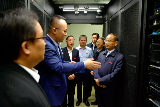 随后,李国金、蔡海生、付子羊为“宜春学院‘AI+’应用研究中心”“宜春学院智算中心”揭牌。仪式结束后,与会领导及嘉宾还参观了智算中心机房,听取运营现状及未来规划汇报,并合影留念。